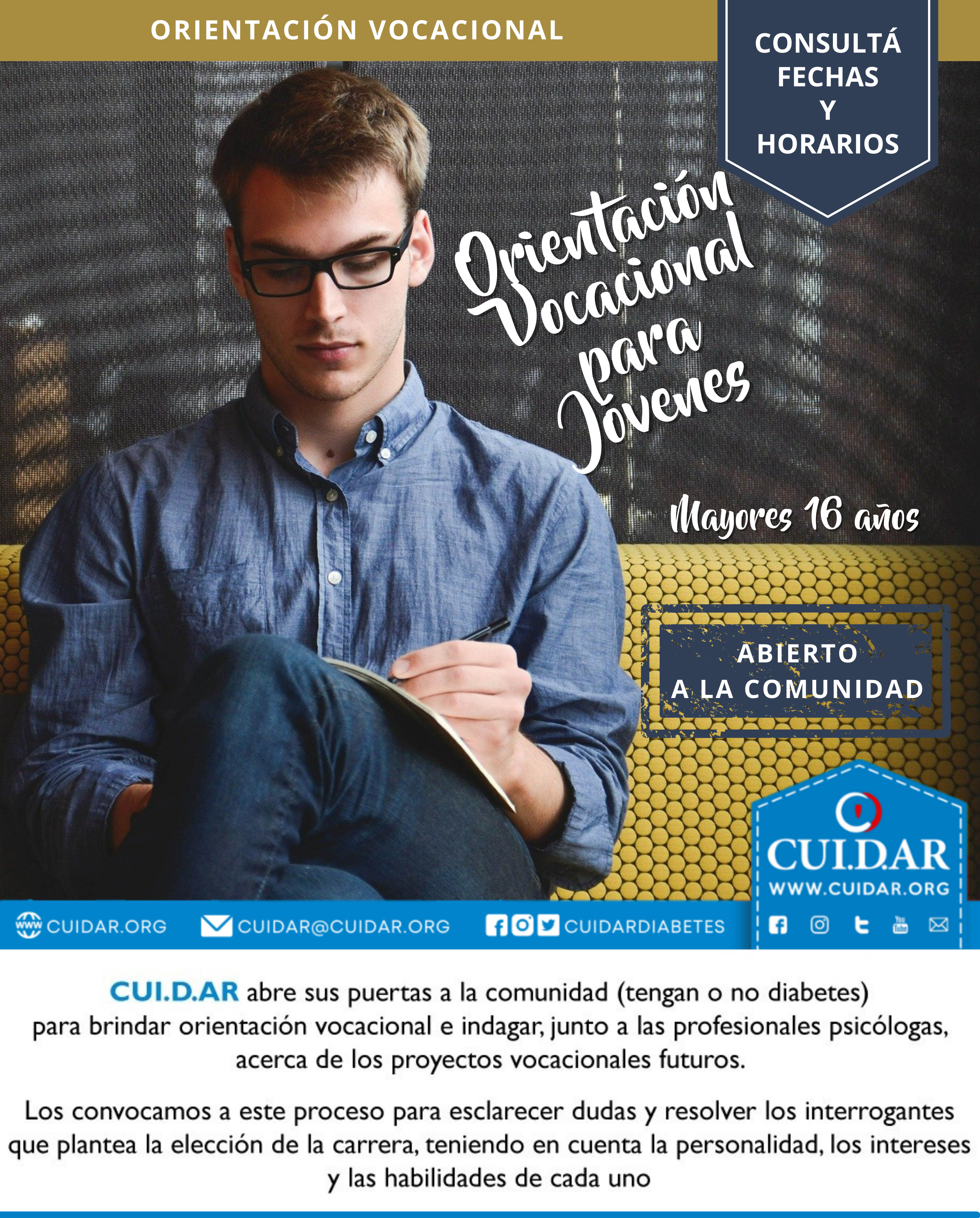 ORIENTACIÓN VOCACIONAL PARA JÓVENES CON DIABETES Y ABIERTA A LA COMUNIDAD (virtual)
