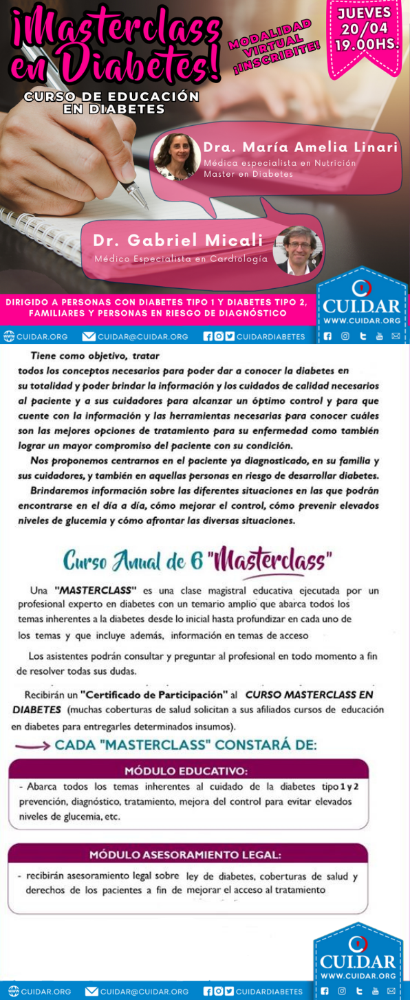 MASTERCLASS EN DIABETES - Curso Anual para Personas con Diabetes Tipo1, Tipo 2 y en Riesgo de desarrollar diabetes 2023
