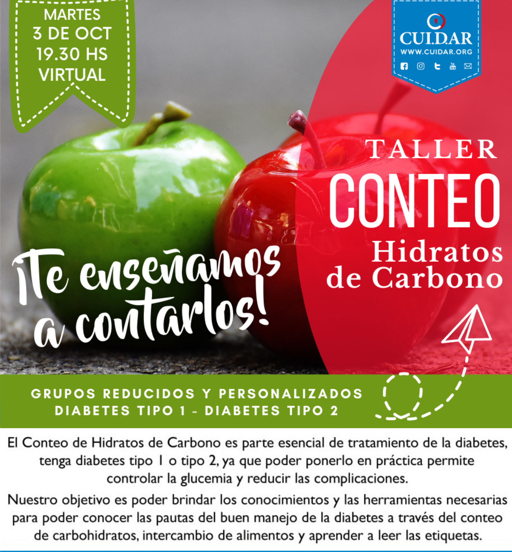 TALLER CONTEO DE CARBOHIDRATOS PARA PERSONAS CON DIABETES Y FAMILIARES (Modalidad Virtual 2023)