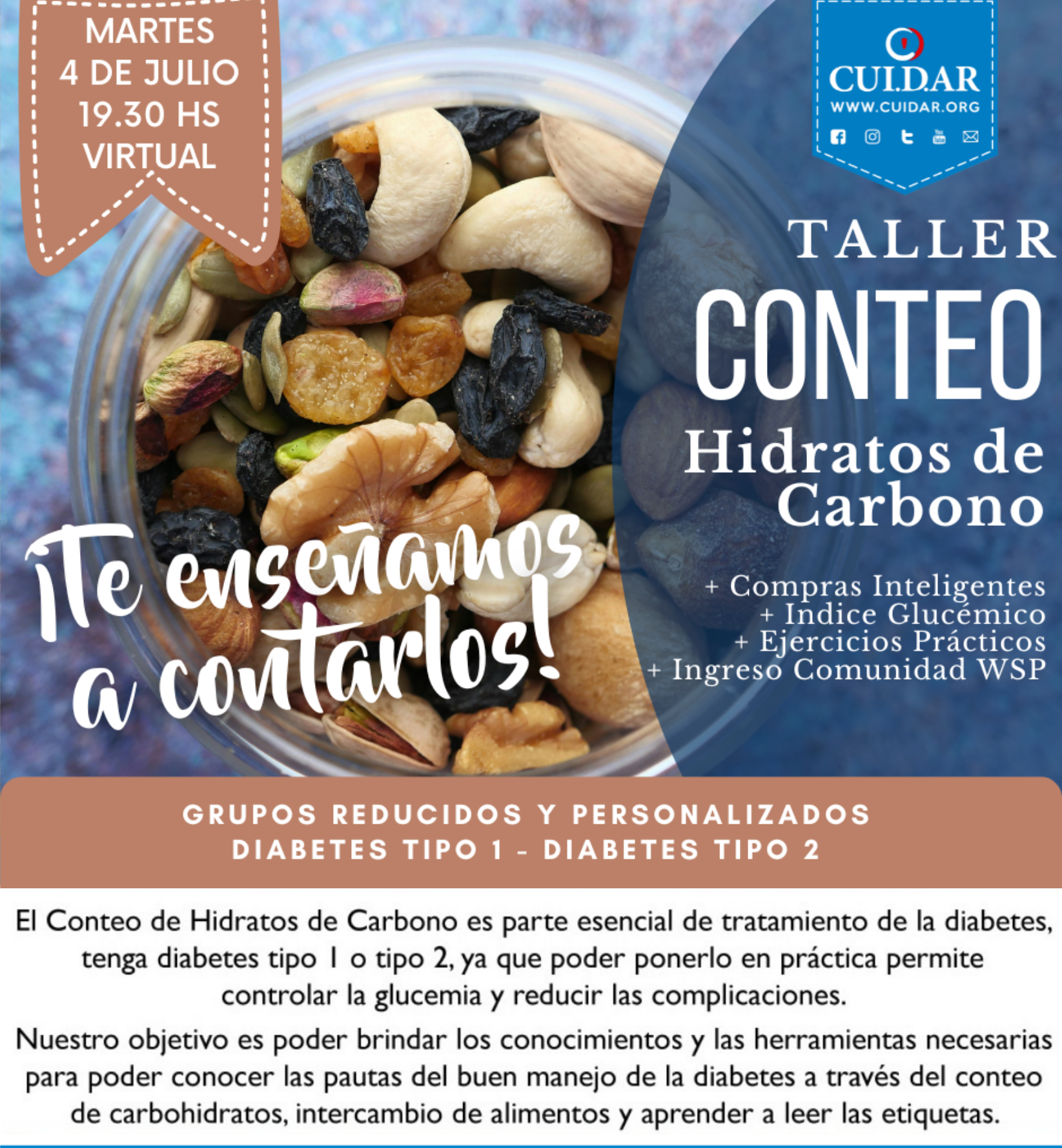 Taller de Conteo de Carbohidratos y Alimentación Saludable para toda la Familia - Edición 2024. Virtual. Julio
