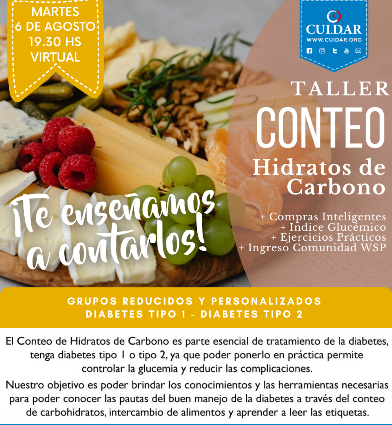 Taller de Conteo de Carbohidratos y Alimentación Saludable para toda la Familia - Edición 2024. Virtual. Agosto