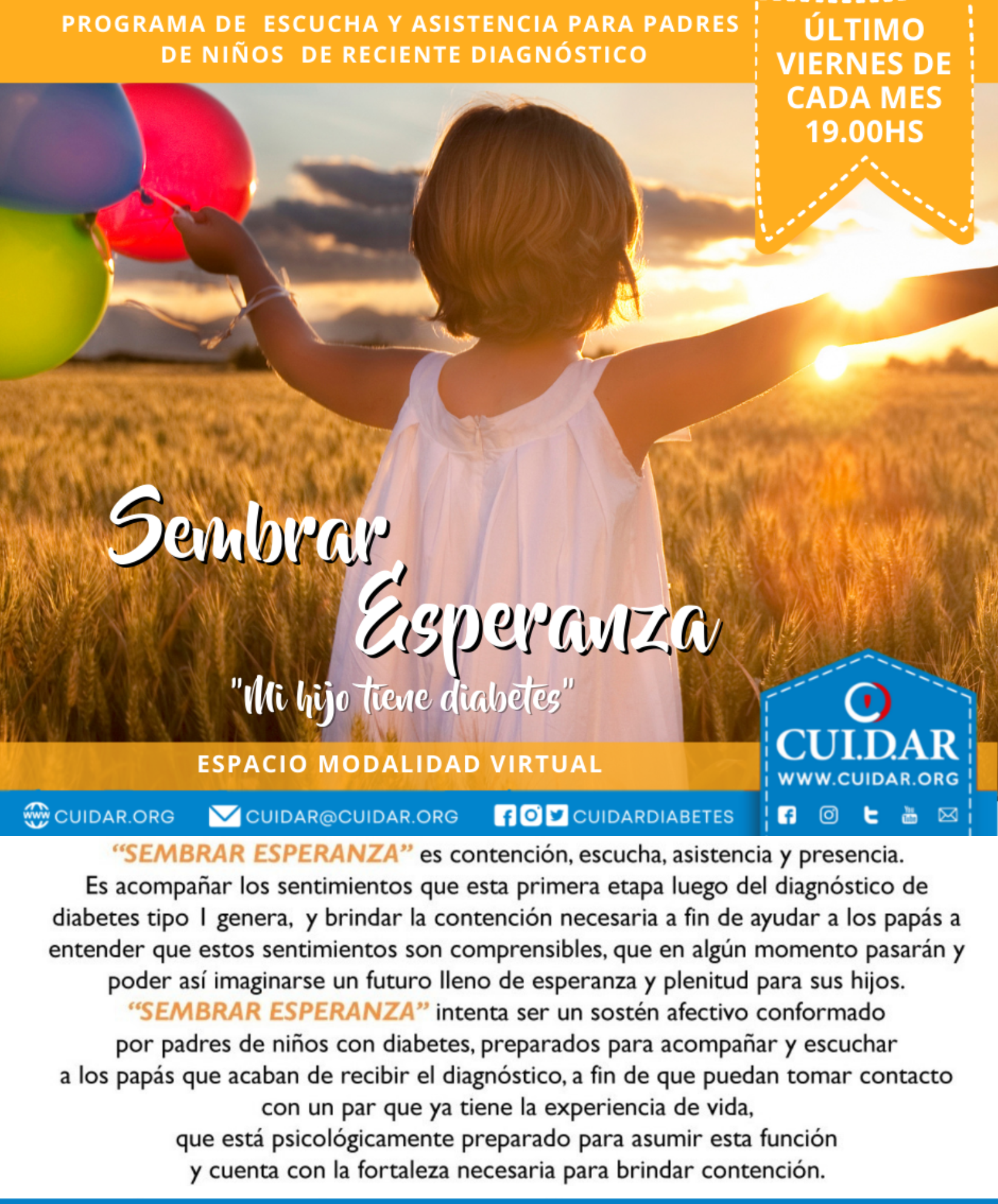 SEMBRAR ESPERANZA -"Mi hijo tiene Diabetes". Dirigido a Mamás y Papás de Hijos Diagnosticados con Diabetes Tipo 1. Virtual. Edición 2024